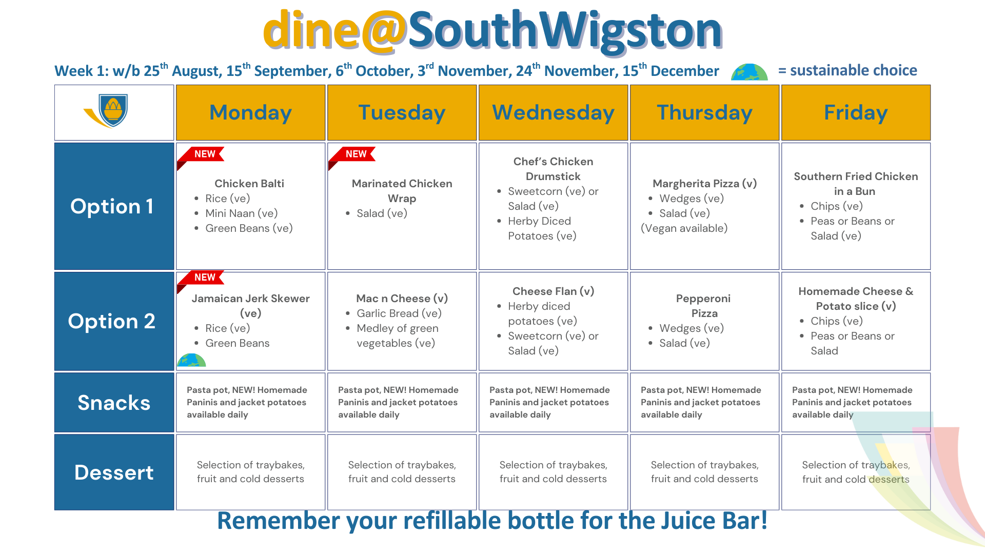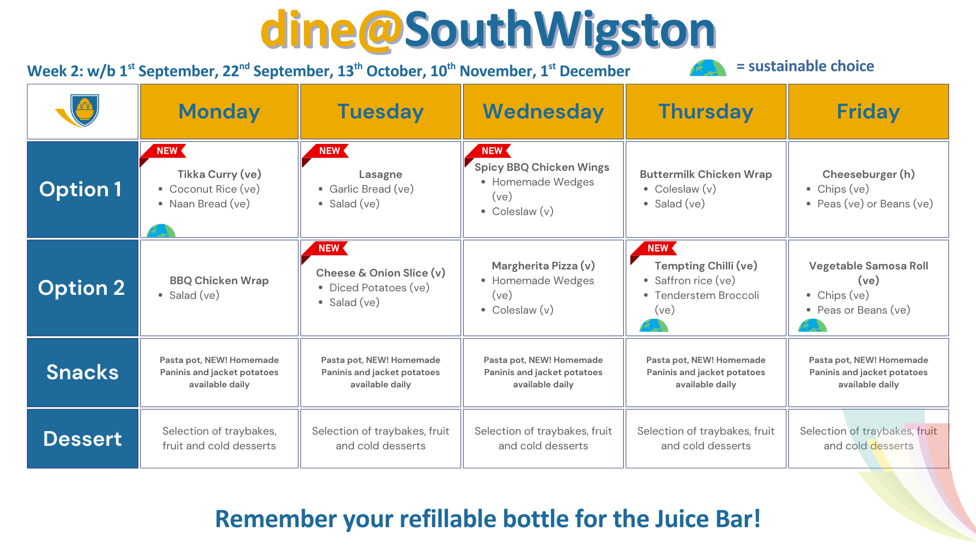 Dishes marked with a planet are the most sustainable choices on the menu, which help us to reduce our carbon footprint.