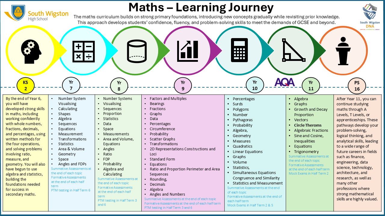 At Key Stage 4, learners demonstrate increasing independence, confidence and resilience. Many recognise the importance of where they will use maths in their future career choice. The curriculum prepares learners not only for academic success but also equips them with transferable skills for life in any setting.